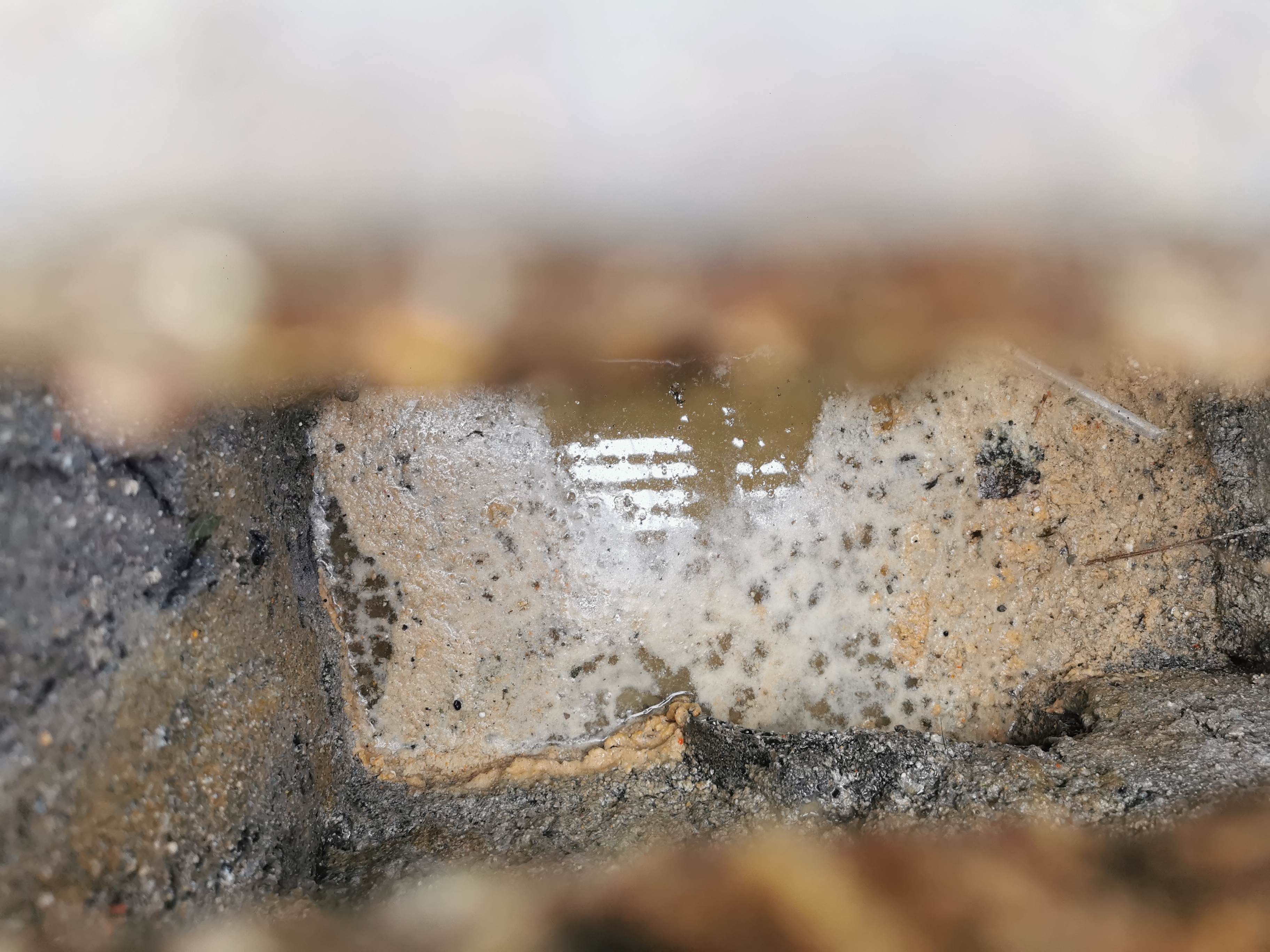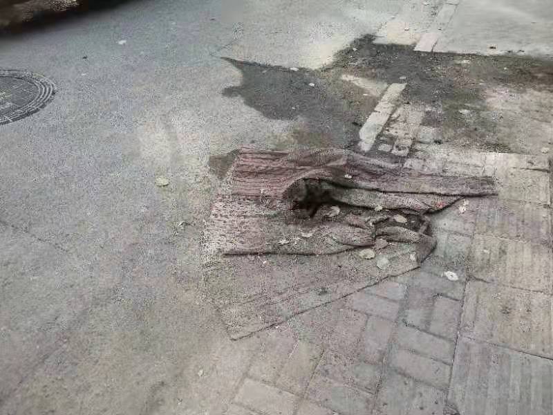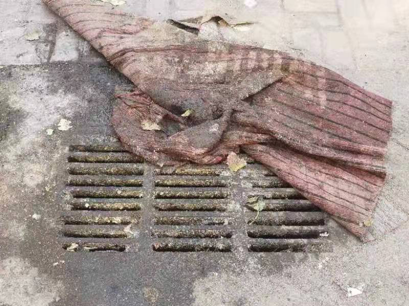11月15日上午10時許,記者剛一來到招賢路翠景小區北門口附近,就聞到一股難聞的腐臭味兒。經過一番尋找,記者發現臭味兒源自道路南側的一個排水井。只見這個排水井四周有很多油污,透過井口朝下望去,能清晰地看到井內漂浮著一層油脂和一些飯菜殘渣。隨后,記者在招賢路與紅旗大街交叉口西側,發現一處蓋著厚厚氈布的排水井。揭開氈布,只見井口處布滿油垢,顏色已經發黑,井內漂浮著的飯菜殘渣同樣散發出腐臭味兒。