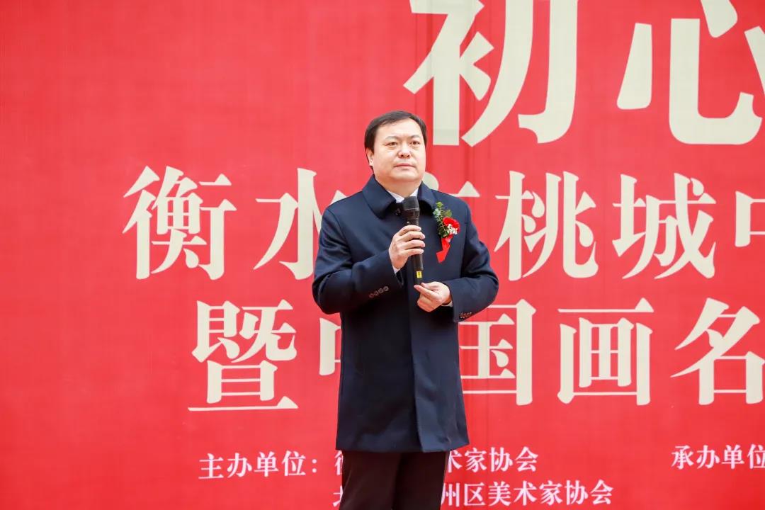 河北省美術家協會常務理事、中國畫藝委會副主任、衡水市美術家協會主席張玉生先生在致辭中指出,此次畫展作品是藝術家們精心創作,用畫筆描繪的大好山河,希望大家盡情觀賞,預祝“衡水桃城中學二十年校慶暨中國畫名家六人作品展”圓滿成功。