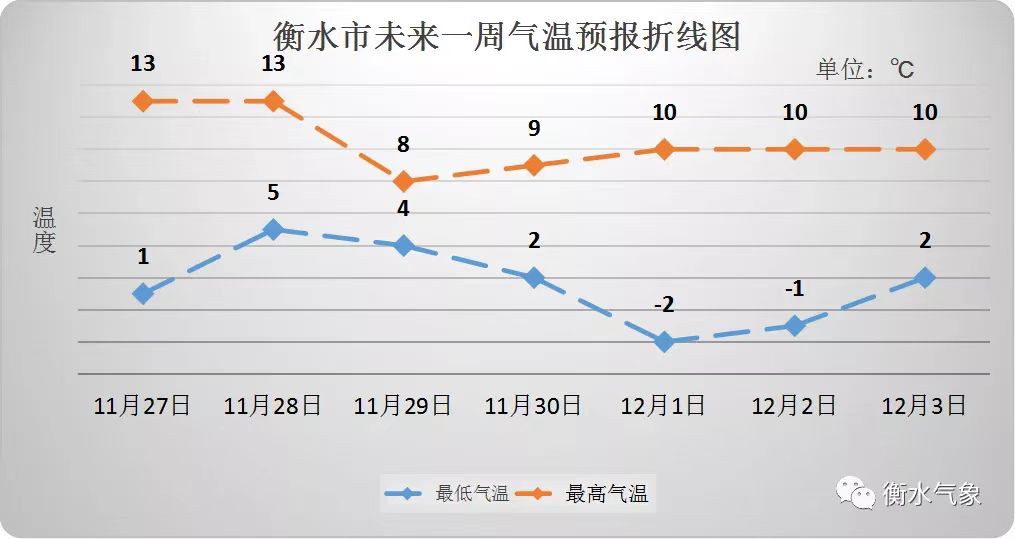 這個周末天氣晴朗,風輕云淡,最高氣溫保持在13℃左右,暖意融融。不過,冷空氣再次來臨,據衡水市氣象臺預報,預計11月29-30日有一次冷空氣活動,29日有小雨或零星小雨,風力較大,未來一周,氣溫有所下降,市民外出要注意防范。