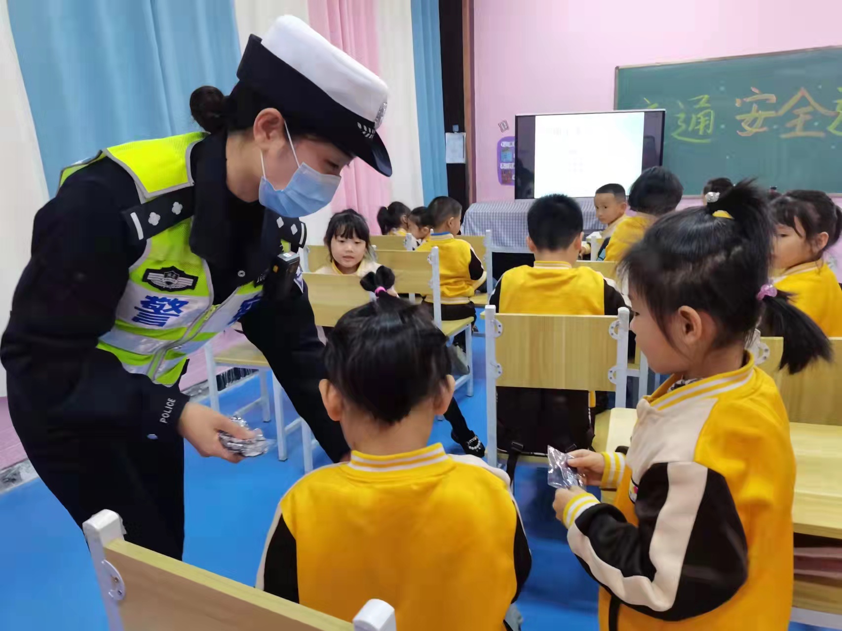 活動現場還擺放了宣傳展板,張貼了“守法規知禮讓,安全文明出行”主題宣傳海報,電子顯示屏滾動播放交通事故、典型違法案例及主題公益廣告視頻,營造出濃厚的宣傳氛圍。