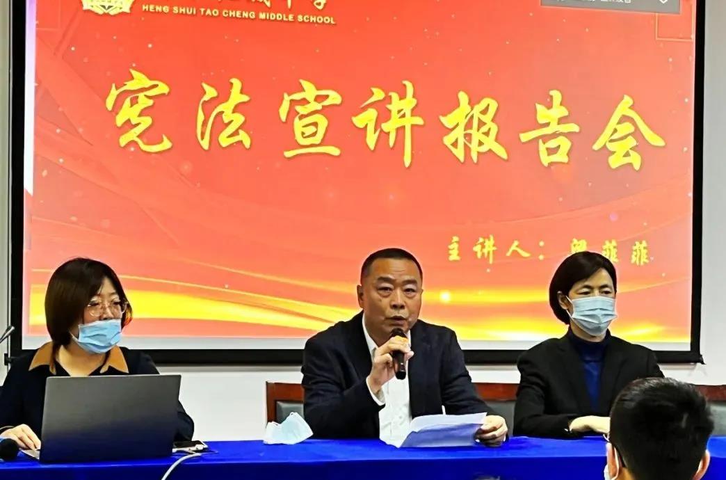 在永興校區(qū),衡水市委政法委宣講辦主任、市法學(xué)會(huì)副秘書長(zhǎng)董景文,河北凌坤律師事務(wù)所執(zhí)業(yè)律師、中共衡水市委依法決策委員會(huì)專家委員、衡水市桃城區(qū)政府法律顧問、衡水市公安局法律顧問梁菲菲,衡水市司法局普法與依法治理處鄭春霞走進(jìn)衡水桃城中學(xué)永興校區(qū)開展“憲法進(jìn)校園”宣講活動(dòng)。