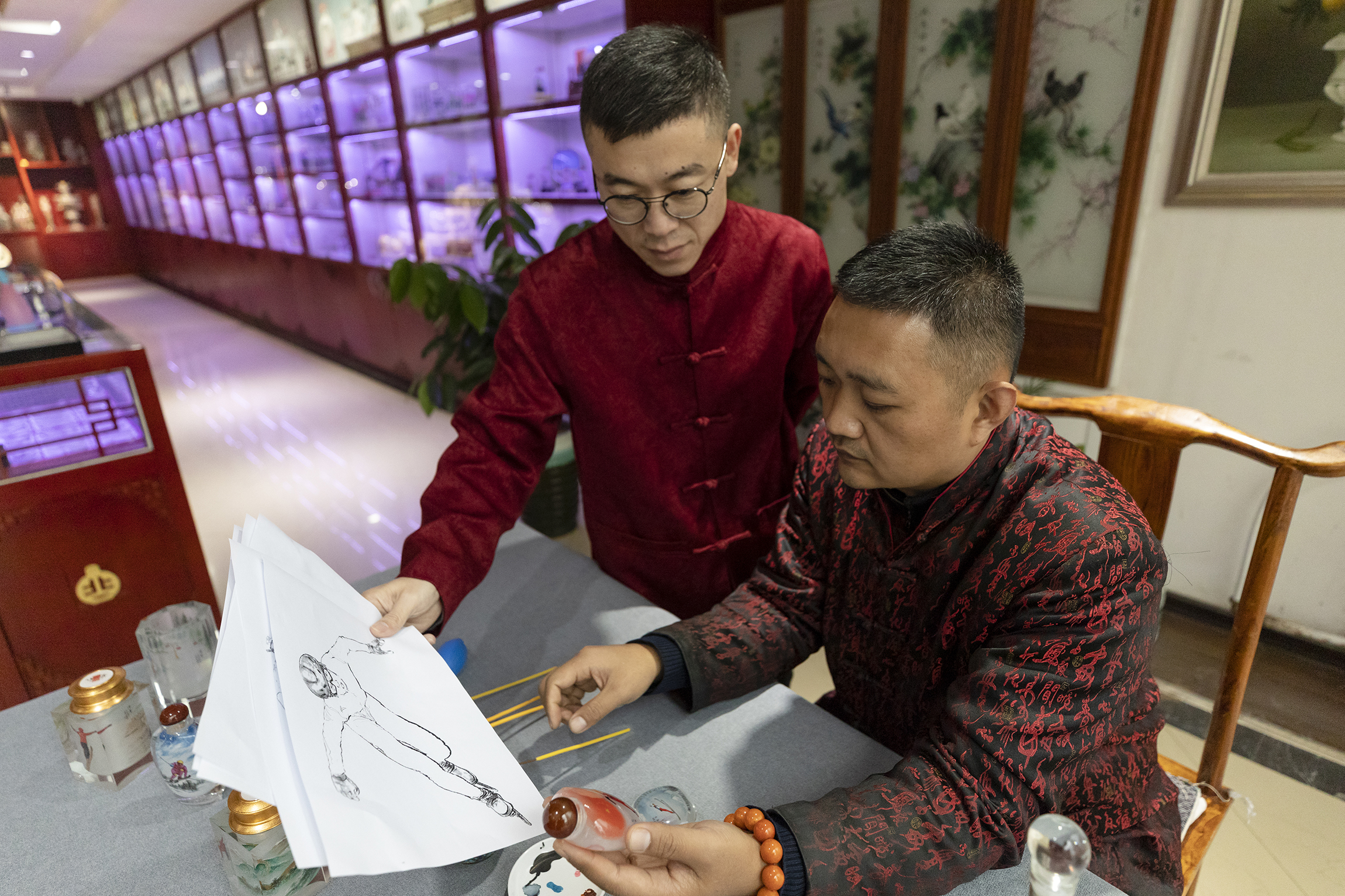 12月10日,內畫藝人正在精心研究內畫作品手稿。