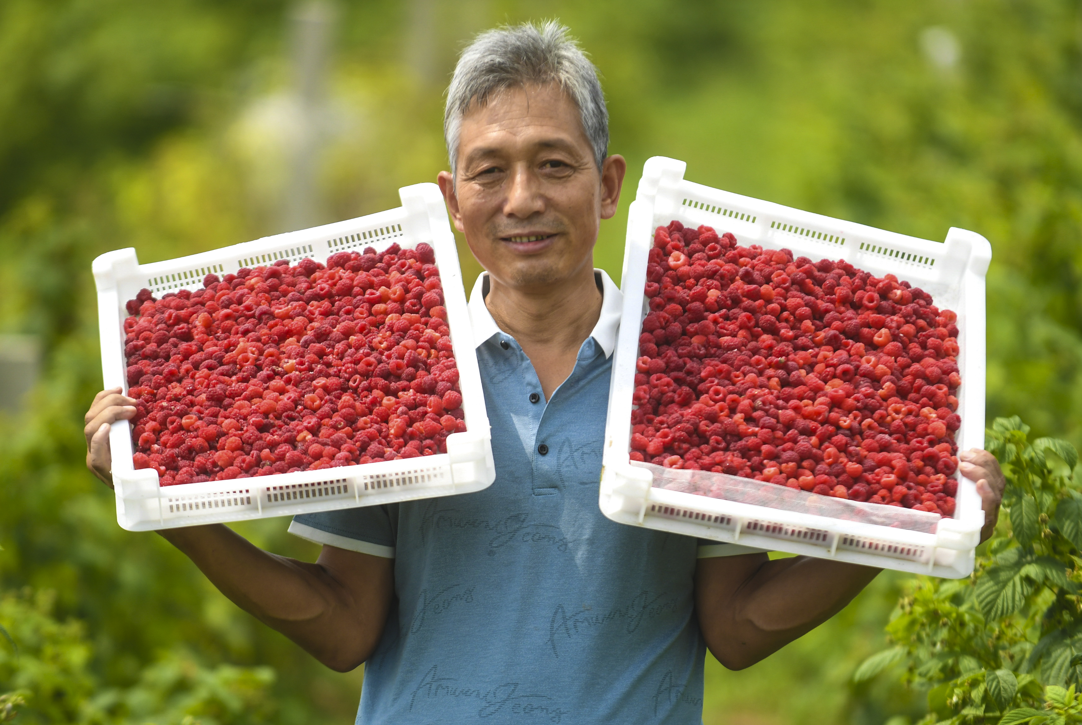 景縣青蘭鄉益聯合作社農民在搬運剛采摘的樹莓。(資料圖)高雷 攝