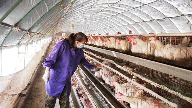 脫貧戶忙著在雞舍拾雞蛋。景縣融媒體中心供圖