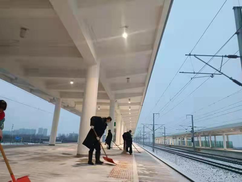 據了解,此次降雪,該段共計出動除雪人員486人,在600多公里31個車站的不同崗位參加除雪工作,保障了京九線、石濟客專、石德線線路暢通和旅客乘降出行安全。