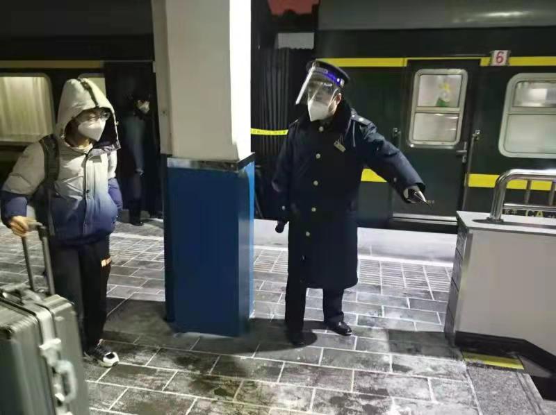24日5時10分,衡水北站鐵路工作人員在車站候車室門口已經清理出旅客進站通道,上下乘車站臺的步行梯也鋪設了防滑紅地毯,站臺上工作人員將站臺積雪清理干凈,為上下車旅客掃出安全通道。6時20分,衡水站東咽喉道岔區,穿有黃色反光馬甲的鐵路工作人員正在清掃線路道岔上的積雪,在他們守護下,一列列客車順利通過。衡水站運轉車間主任宋波介紹,23日上午車間就接到了降雪預警通知,車間干部會同休班職工按照預案,分成了4支除雪小分隊,沒有回家都在車間備班。24日凌晨1時20分,備班人員按照分工輪流進行道岔除雪,連續奮戰了6個多小時,直到7時30分才回到車間休息,沒有因為降雪影響一列列車。