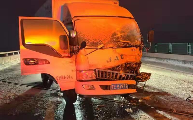 12月24日,衡水市出現范圍降雪,導致路面結冰濕滑。01時56分,武強縣石黃高速陳莊到石家莊方向,一輛貨車與一輛道路撒鹽車發生追尾,后車司機被困車內。衡水市消防救援支隊武強大隊接到報警后,立即出動2車10人趕赴現場實施救援。