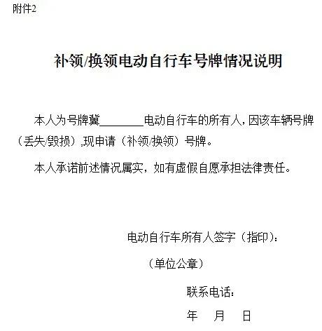 2.《補(bǔ)領(lǐng)/換領(lǐng)電動自行車號牌情況說明》。