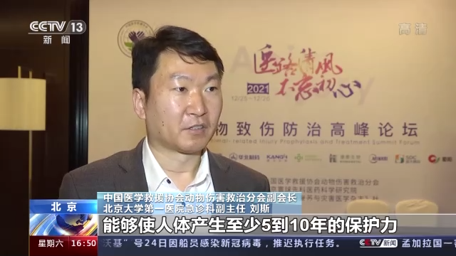 中國醫(yī)學(xué)救援協(xié)會動物傷害救治分會會長 北大人民醫(yī)院急診科副主任 王傳林:我們要按照法律要求文明養(yǎng)犬,對于高風(fēng)險地區(qū)特別是高風(fēng)險人群,兒童、老人跟動物接觸頻繁,我還是建議他們提前打個疫苗,同時我們要大力宣傳給狗打疫苗,如果一個動物特別是犬接受過兩次或兩次以上合格的獸用疫苗,那么我們認為這個動物是安全的,一般不會發(fā)病。