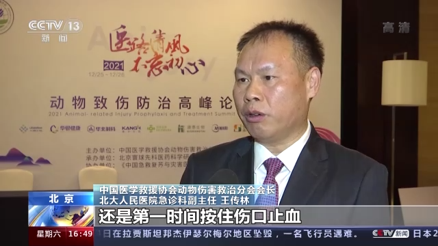 中國醫(yī)學(xué)救援協(xié)會動物傷害救治分會會長 北大人民醫(yī)院急診科副主任 王傳林:因為沖洗得好能夠把細菌、病毒沖掉,如果傷得比較重的話,還是第一時間按住傷口止血,到就近的醫(yī)療機構(gòu)找專業(yè)人員進行規(guī)范的處置。