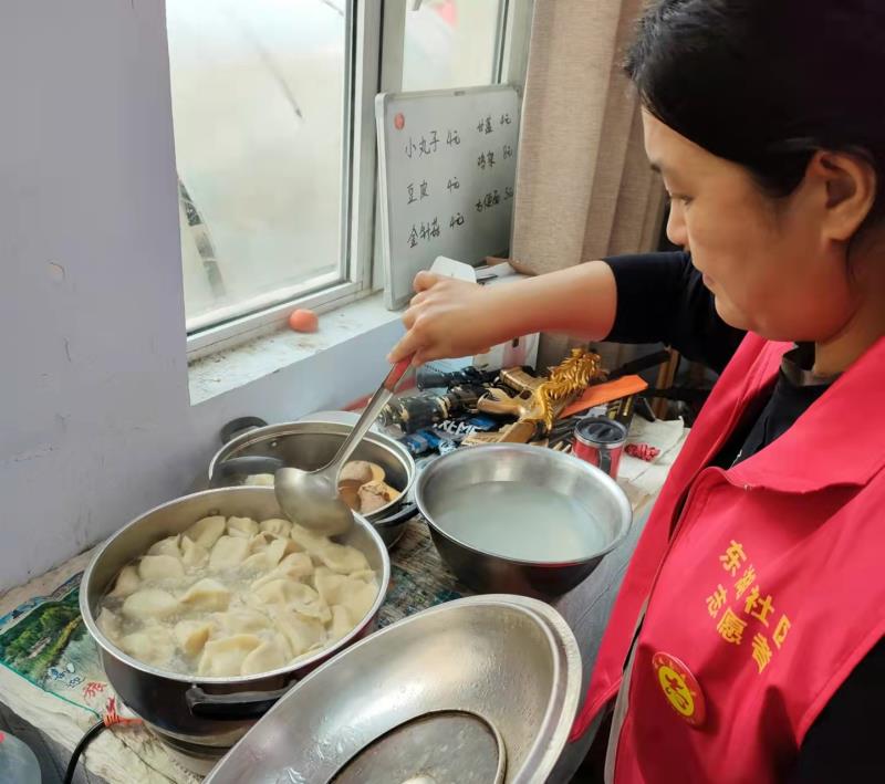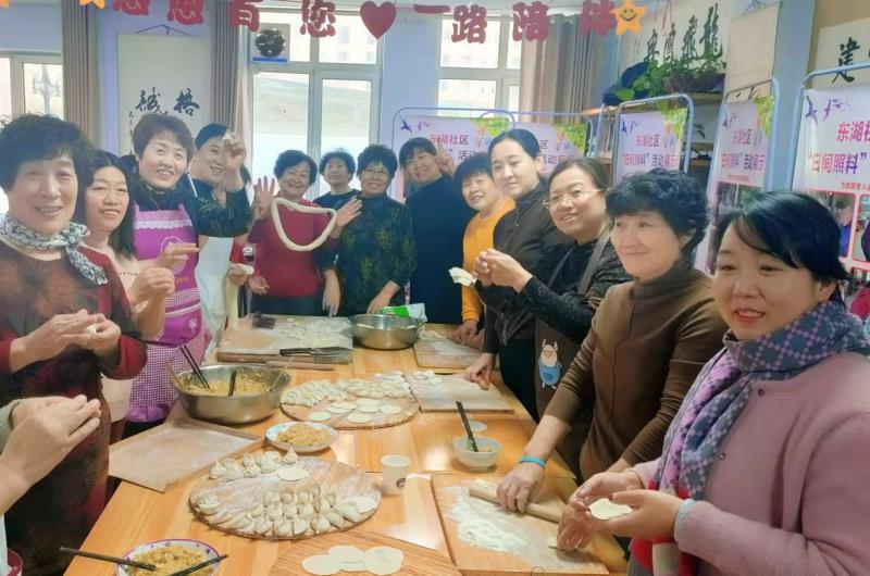 洗菜、調(diào)餡、搟皮……活動室內(nèi),居民們圍在桌子前,分工協(xié)作包餃子,共敘鄰里情,紅紅火火迎接元旦的到來。經(jīng)過大家一個多小時的勞動,白菜豬肉和茴香雞蛋餡的餃子包好了。大家又忙著燒水、下餃子,不一會兒,熱氣騰騰的餃子就端上了桌。一時間,餃子的香味在空氣中彌漫,大家圍坐在一起,邊吃邊聊,拉近了鄰里之間的距離。