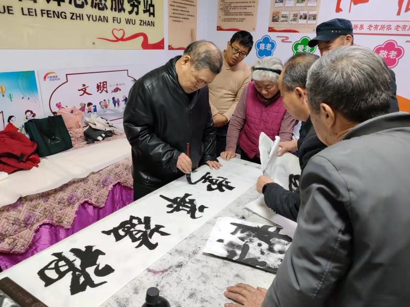 “家和萬事興”“福蘊華堂”“海納百川”……社區(qū)書畫愛好者也紛紛趕來,揮毫潑墨,為居民們送上新年祝福。前來求字的居民越聚越多,書法愛好者們的熱情愈加高漲,他們手中的筆一刻不停,現(xiàn)場氣氛既熱鬧又喜慶。