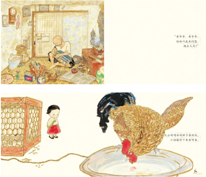 這本書來自韓國兒童文學作家尹石重在1940年創作的童詩,講的是一個充滿童趣的故事。一個小姑娘的媽媽要她去商店問問現在幾點了。老爺爺告訴她現在是四點半了。可在回家的路上,小姑娘一會兒看小公雞喝水,一會兒看螞蟻搬家,一會兒又蹦蹦跳跳追蜻蜓,等回到家時太陽已經落山了,她跟媽媽說,“那位老爺爺說,四點半”。