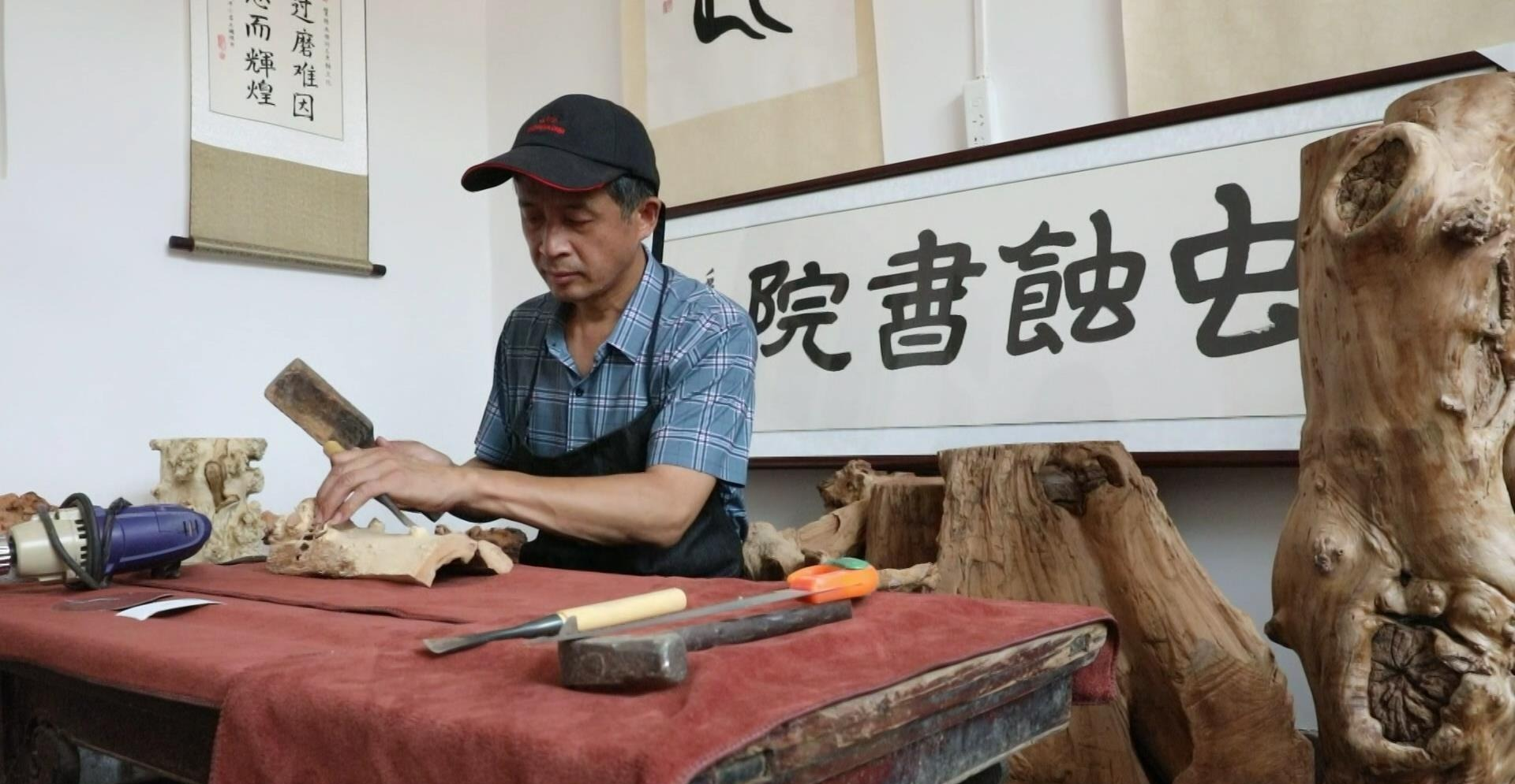 蟲子啃蝕樹木后會(huì)在表層形成蜿蜒曲折、奇絕妙趣的花紋,以此為素材進(jìn)行的藝術(shù)創(chuàng)作,稱為蟲蝕藝術(shù)。目前,全國范圍內(nèi)從事這項(xiàng)藝術(shù)的人鳳毛麟角,今年49歲的武邑人陳永順便是其中一位。10多年間,他在一株株枯木病株中發(fā)掘著自然之美,探尋著人生之道,并致力于讓這項(xiàng)“冷門”非遺“熱”起來。