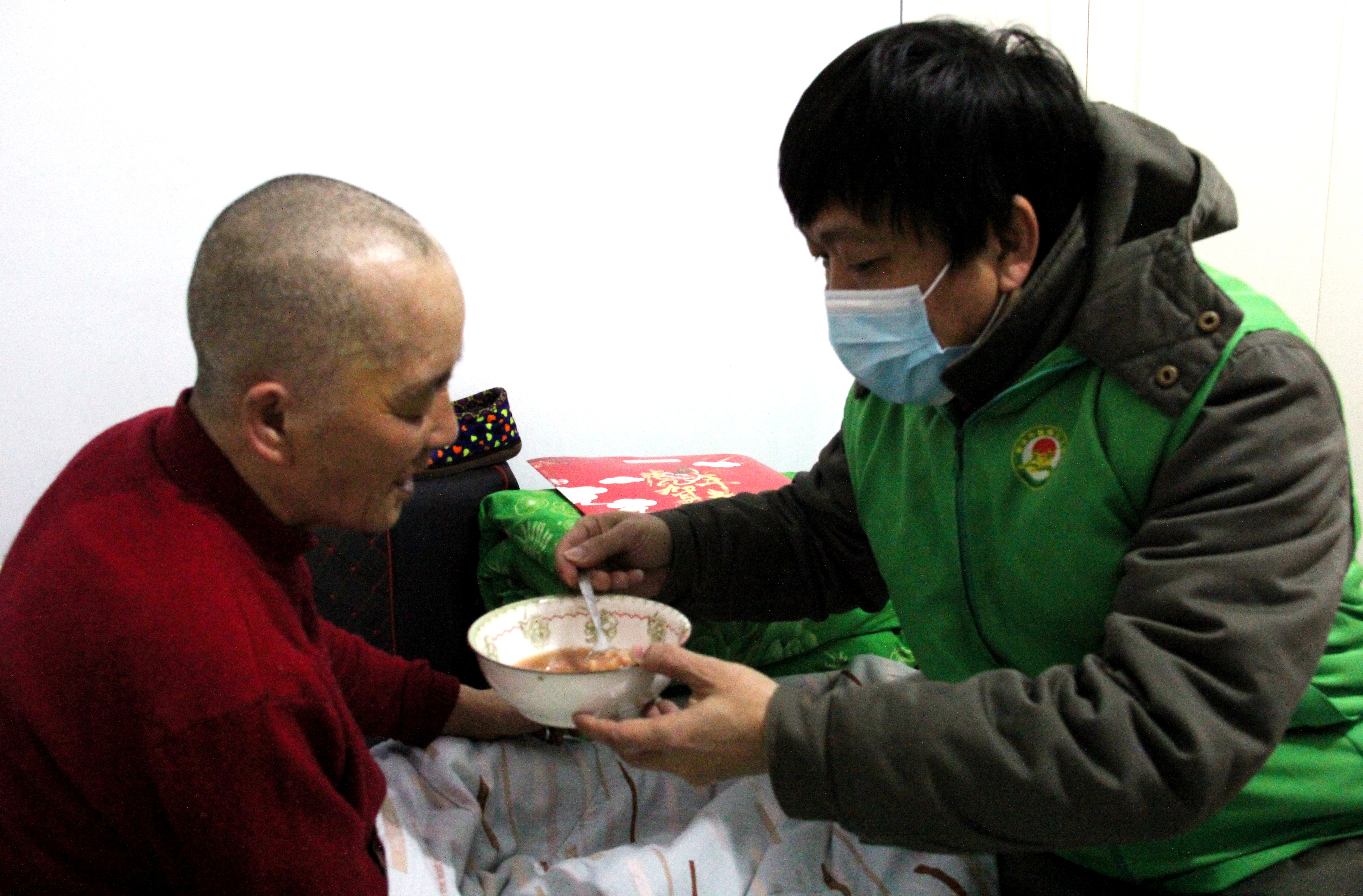 隨后,志愿者為張曉偉和老人端上了熱氣騰騰的八寶粥,并為他們送上窗花、對聯和福字,祝福全家新年快樂,身體健康!正值三九嚴寒,室內卻暖意融融,張曉偉感動地說:“謝謝你們一直以來對我們的關心和幫助,待我們就像家人一樣。這臘八粥喝下去心里暖暖的,感覺身上也更有勁兒了!”