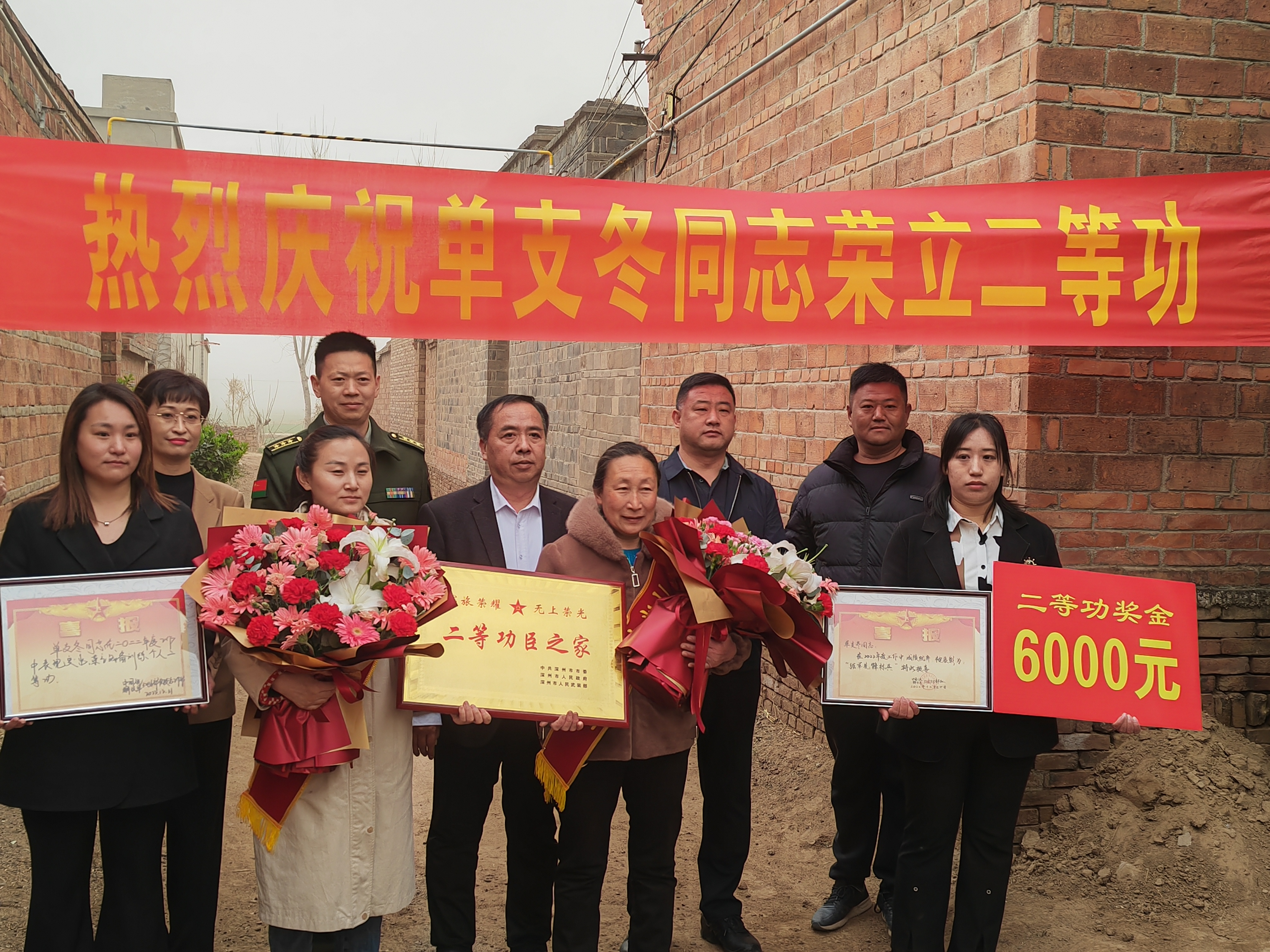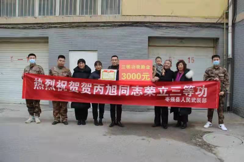 1月7日下午,棗強(qiáng)縣人武部工作人員來(lái)到縣檢察院居民小區(qū)現(xiàn)役軍人賀丙旭家中,專程送上立功喜報(bào)和慰問(wèn)金,并向其全家表示由衷的感謝和祝賀。