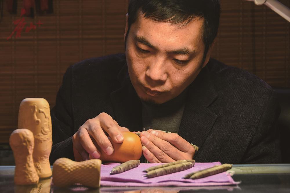 劉建春的砑花作品多呈現在范制鳴蟲葫蘆上,范制葫蘆也是一項非物質文化遺產項目。