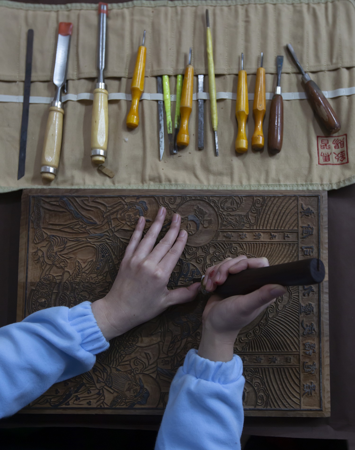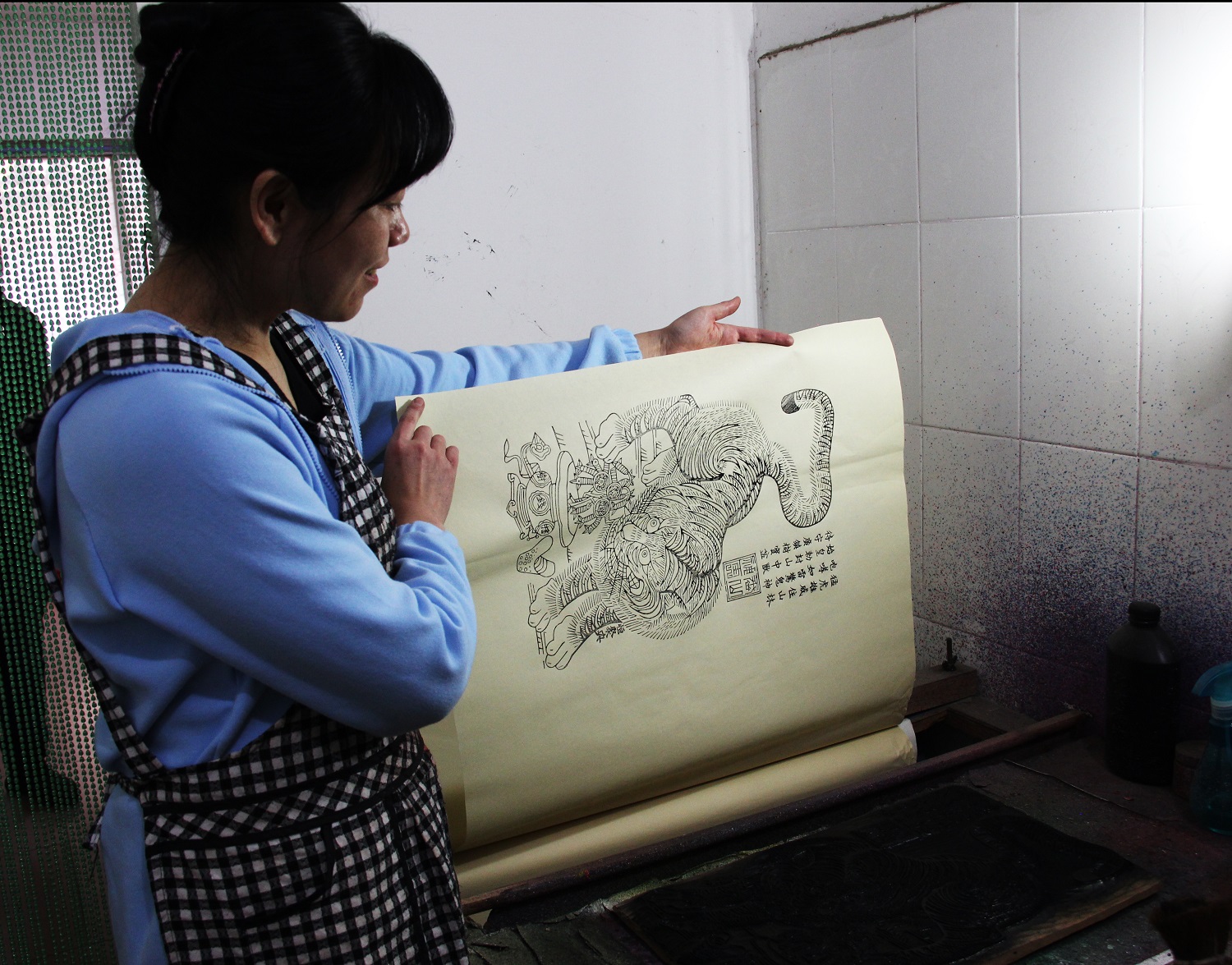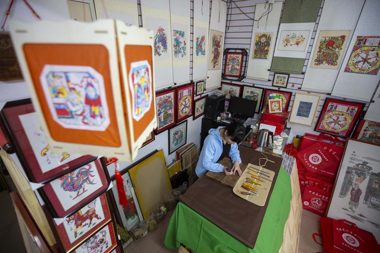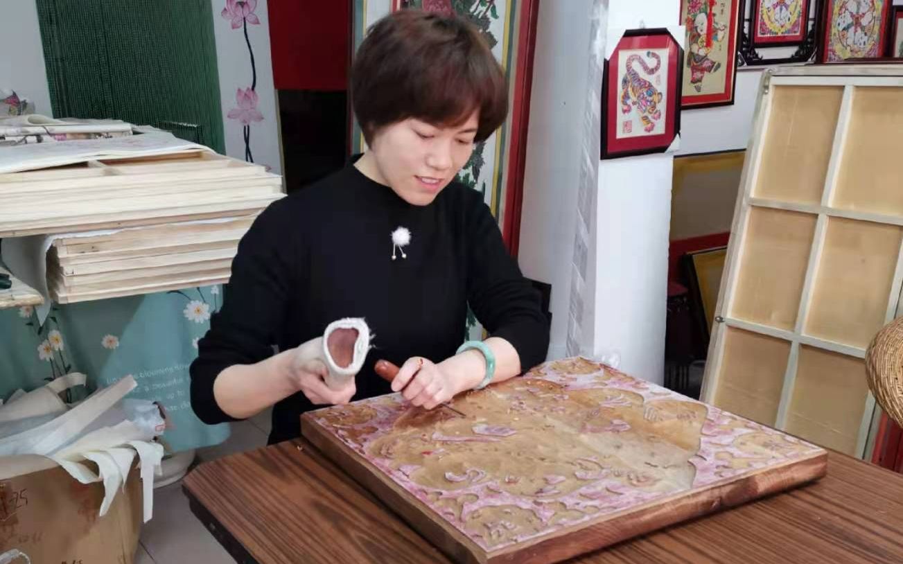 2006年,辛艷君開了一家淘寶店,專賣武強木版年畫,隨著生意越來越紅火,客戶的需求也開始多樣化。“有人專門要刻版,因為貨源緊張,我決定自己學。”她找到了武強年畫國家級非遺傳承人馬習欽,一心學習刻版技藝。為了尋找合適的刻版木材,她三番五次驅車前往滄州,從當地農戶手里收購木頭。刻刀不離手的日子里,辛艷君手上不知磨了多少水泡,時間久了,水泡又變成厚厚的老繭。