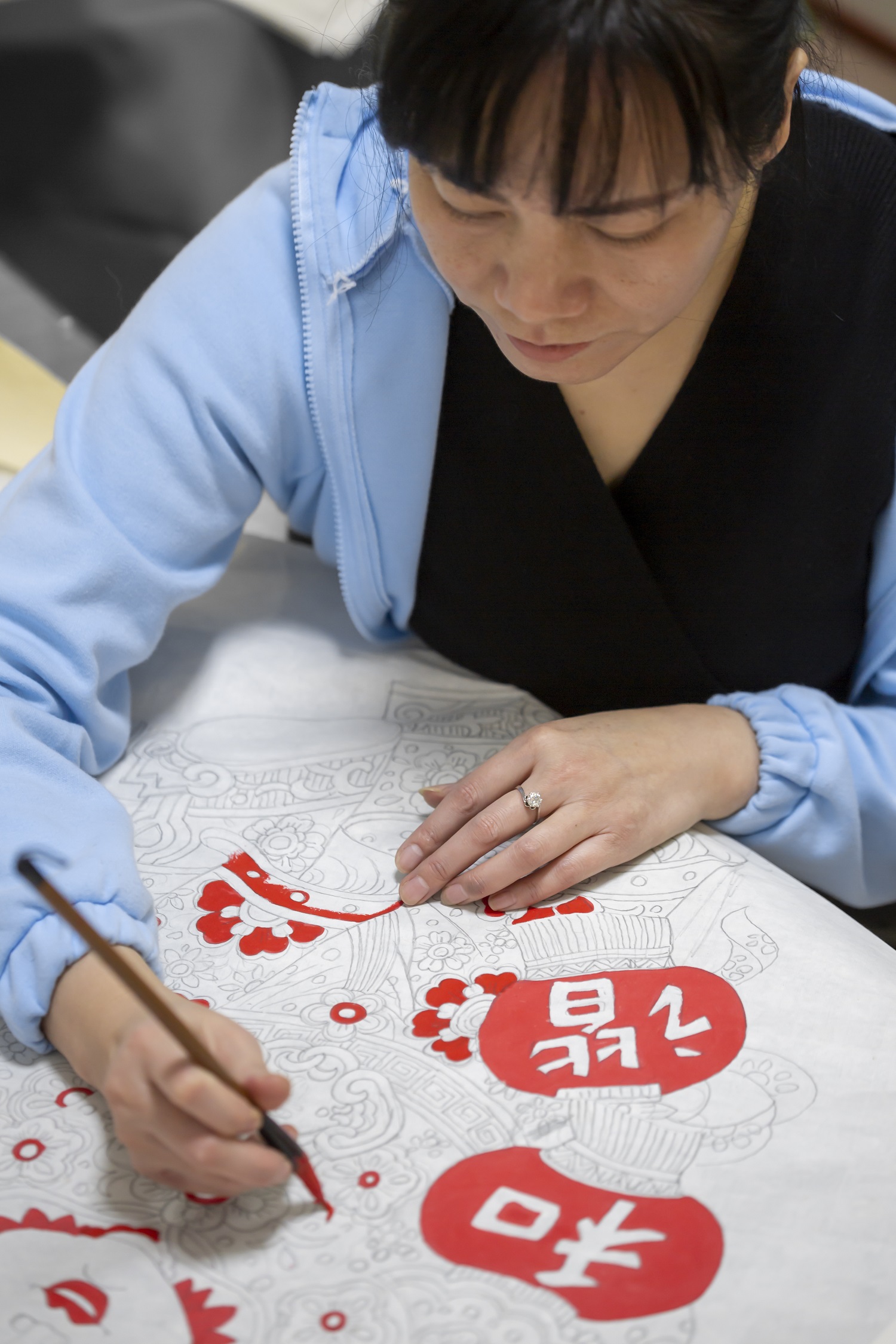 今年48歲的辛艷君,自小喜歡畫畫,2000年畢業于衡水職業技術學院習三內畫藝術專業。一次偶然機會,辛艷君認識了武強一家年畫作坊的負責人,得知作坊需要畫師,癡迷于藝術的辛艷君毫不猶豫地進入作坊,從此與木版年畫結緣。