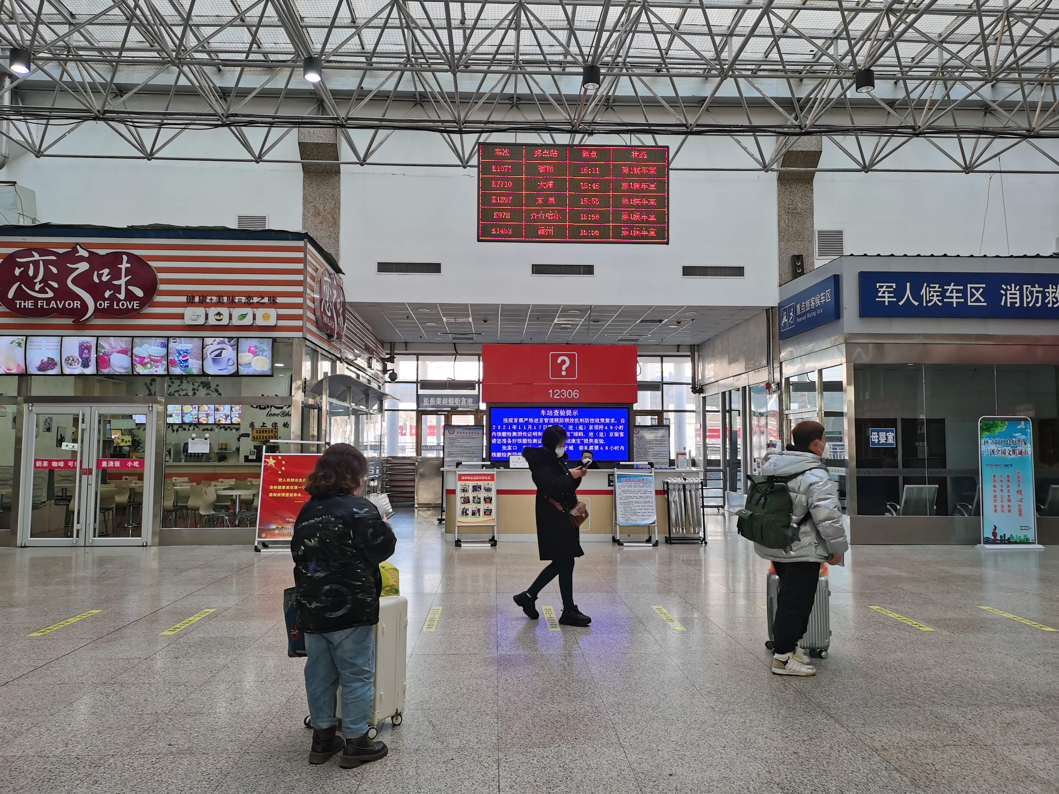 “進站旅客須出示健康碼、行程卡、身份證,正確佩戴口罩,配合體溫檢測,保持一米間隔”“進京旅客請出示48小時內核酸檢測陰性證明和北京健康寶綠碼”“去往張家口地區的旅客請出示48小時內核酸檢測陰性證明”……當天上午,衡水火車站進站口的廣播聲不斷,旅客們依次進入候車廳,出示兩碼、身份證,進行安檢,實名驗證驗票……一切井然有序。