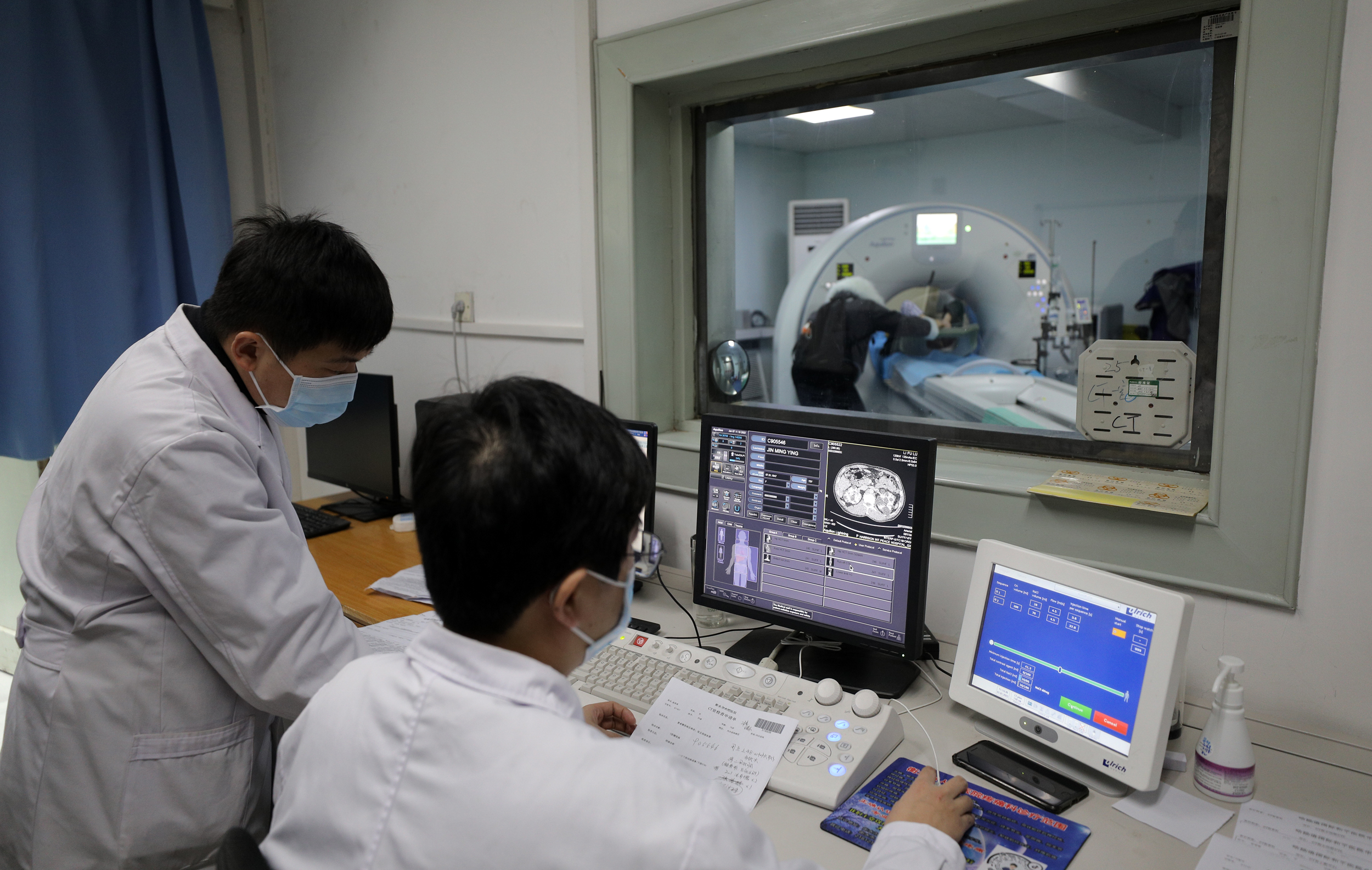 CT室醫(yī)生正在為患者進(jìn)行檢查。