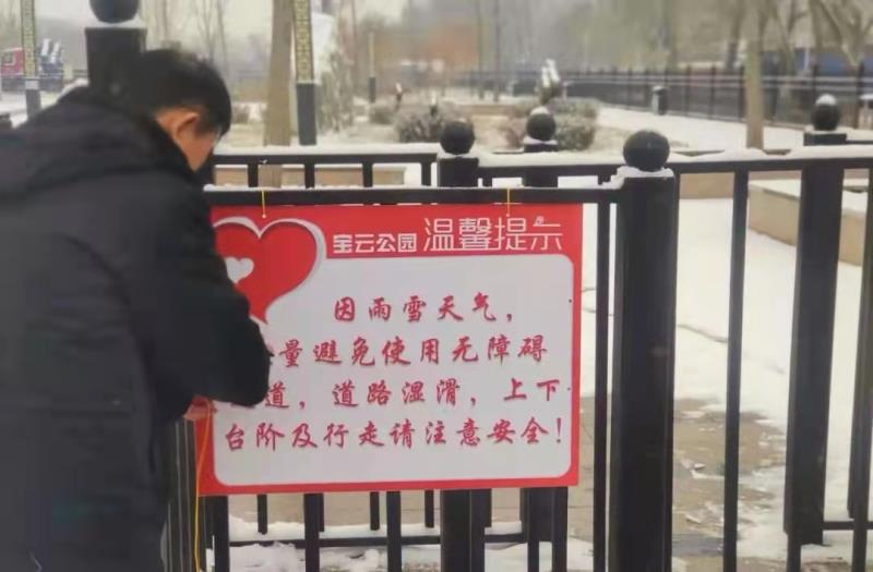 截至目前,各公園、綠化隊(duì)共出動(dòng)員工200余人次,動(dòng)用各類工具、車輛400余件(輛),清理積雪8萬余平方米,并及時(shí)張貼、懸掛溫馨提示牌等警示標(biāo)語,為廣大市民安全游園提供了保障,帶來了便利,受到市民歡迎和好評(píng)。
