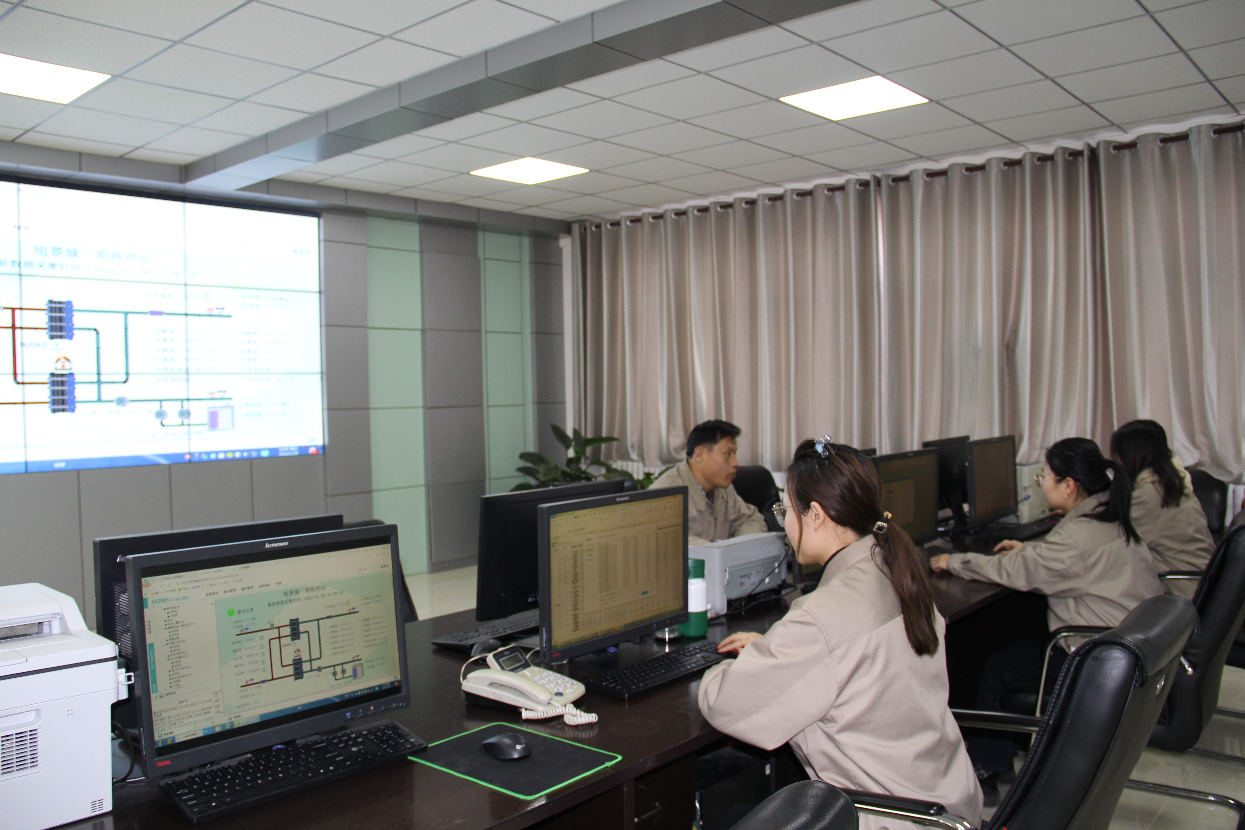 恒通熱力公司調度中心工作人員,密切關注著各自的電腦,認真記錄著每個數值的變化,查看是否有異常情況。“我的家在滄州,雖然今年春節值班不能返鄉和父母、孩子們團聚過春節了,但是作為供熱人,能與同事們一起擔負重任,保障市區供熱,讓老百姓切實感受到‘暖身’‘暖心’,能在平凡的崗位上發揮自己的光和熱,讓我感到非常地驕傲和自豪。”總調度中心員工韓雪說。韓雪是一名有著十年工作經驗的調度,她平時的工作就是監測各種數值,顧名思義,調度中心就是市區整個供熱服務中心的“大腦”,2030萬平方米的供熱面積,二十多萬戶居民家中的暖氣運行參數,都在調度中心的電腦上實時監控。