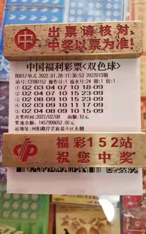 2022013期雙色球開獎號碼紅色球為02、03、04、07、10、18,藍色球號碼為15。當期,一等獎開出兩注,單注獎金為1000萬元,二等獎開出133注,單注獎金221005元。其中一注二等獎出自我市桃城區(qū)河陽路岸芷庭蘭小區(qū)東側(cè)的13180152福利彩票投注站。