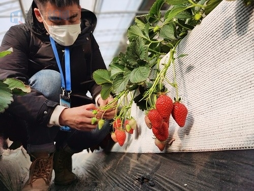 種植出“冬奧草莓”的草莓園位于尚義縣紅土梁鎮。從張家口市出發,車程一個多小時,寒冬時節,道路兩側田野里的積雪還未融化,走進草莓園,這里卻是一片生機勃勃的景象。