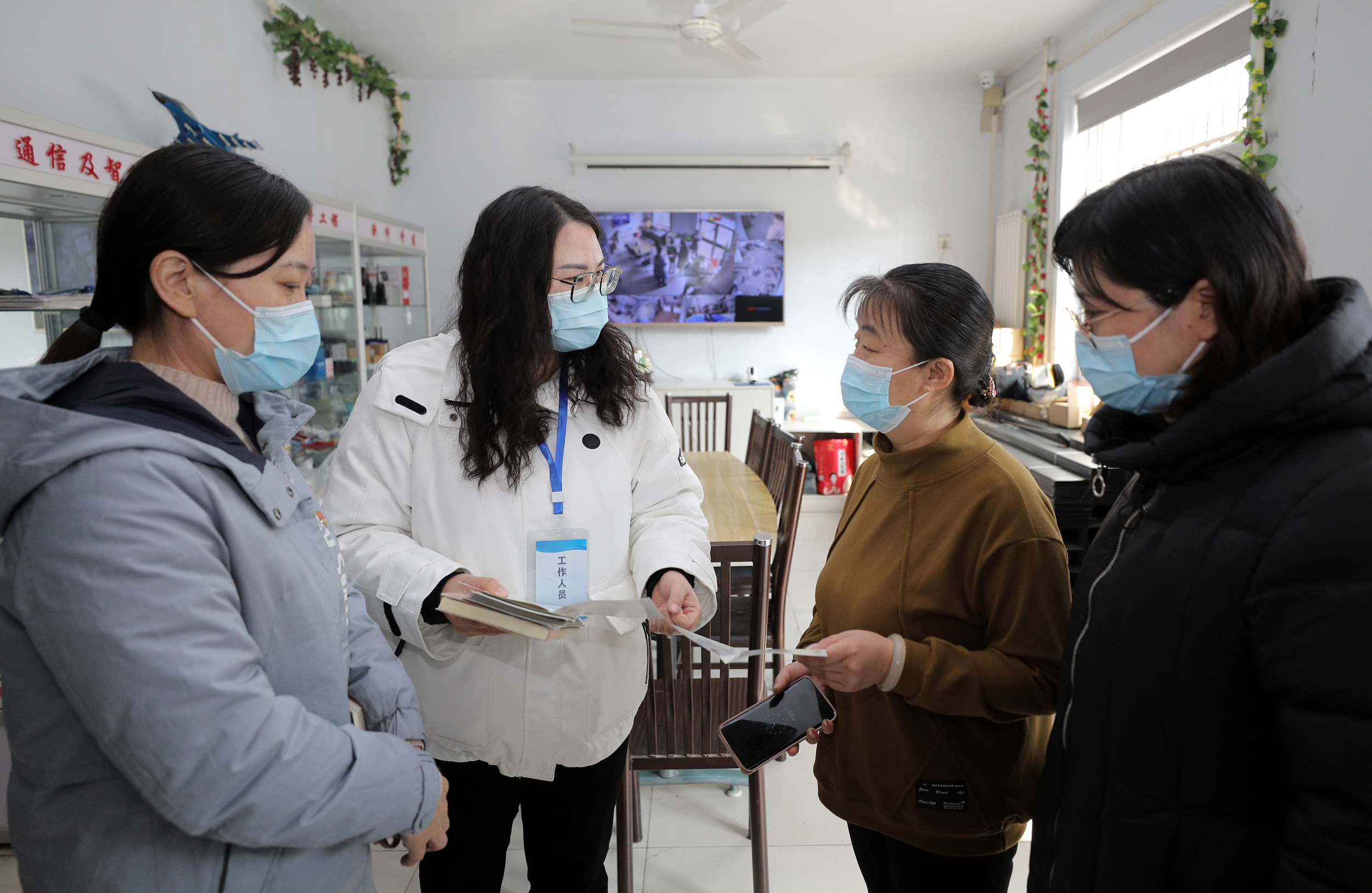 2022年2月16日,桃城區人社局工作人員向門店企業發放傳單。
