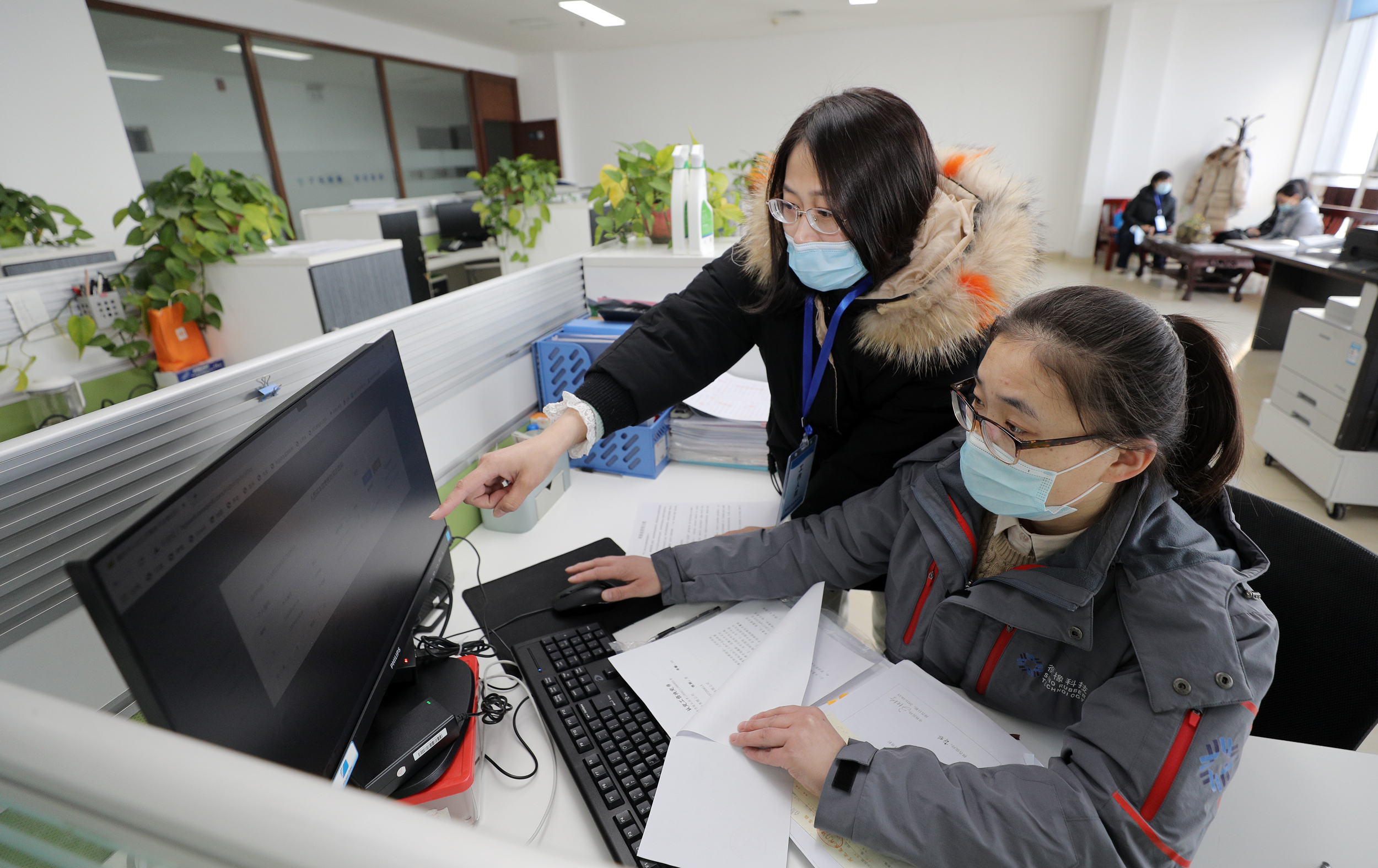 2022年2月16日,桃城區人社局工作人員幫助群眾查詢社保信息。