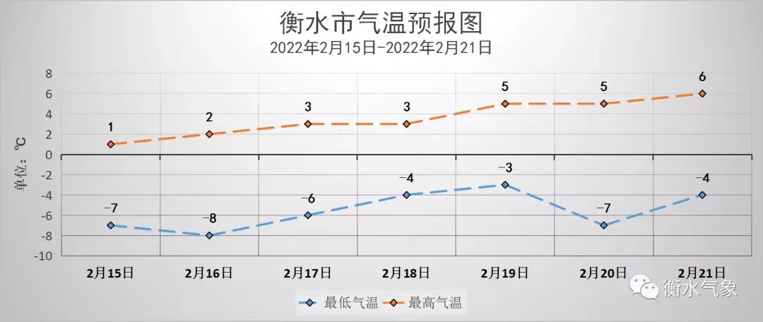 具體天氣預報為:2月16日夜間,多云,東南風2~3級,最低氣溫-5℃到-6℃;17日,白天多云,夜間陰間多云,3℃到-4℃;18日,陰轉多云,5℃到-2℃;19日,多云轉晴,3℃到-5℃;20日,晴間多云,6℃到-4℃;21日,晴間多云,9℃到-3℃;22日,多云轉晴,4℃到-4℃;23日,晴間多云,7℃到-3℃。