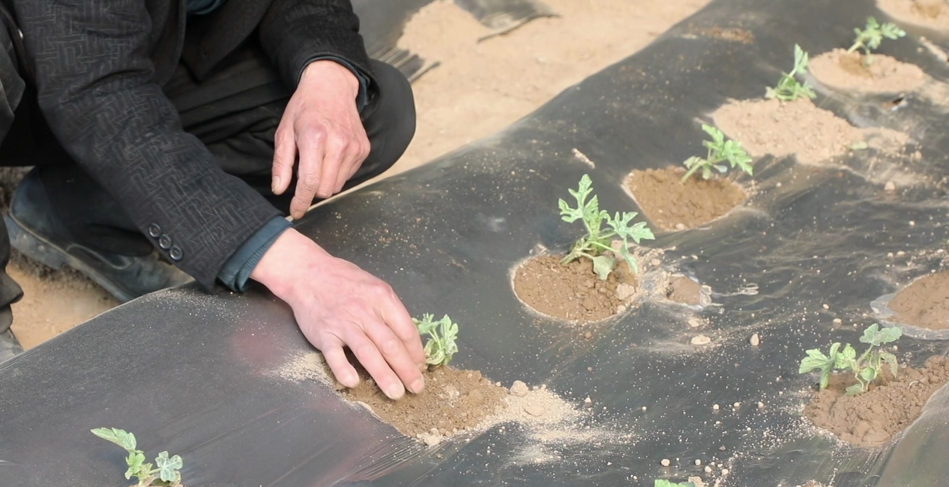 瓜農正在育苗。劉瑋 攝