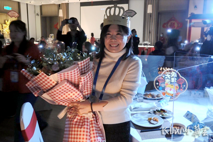 吉林廣播電視臺記者張巖在2022張家口媒體接待站度過難忘的生日。長城網·冀云客戶端記者 閆航 攝