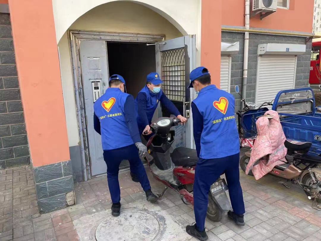 主動出擊,消除火災隱患?;顒又?,“藍朋友”志愿服務隊的隊員結合當前春季消防安全工作,對消防設施設備、消防通道、安全出口等進行查看,切實了解具體情況。同時,他們還對小區內占用疏散通道以及在安全出口違規停放的電動車、自行車進行嚴格整治,為轄區群眾普及電動車規范停放和充電的重要性。