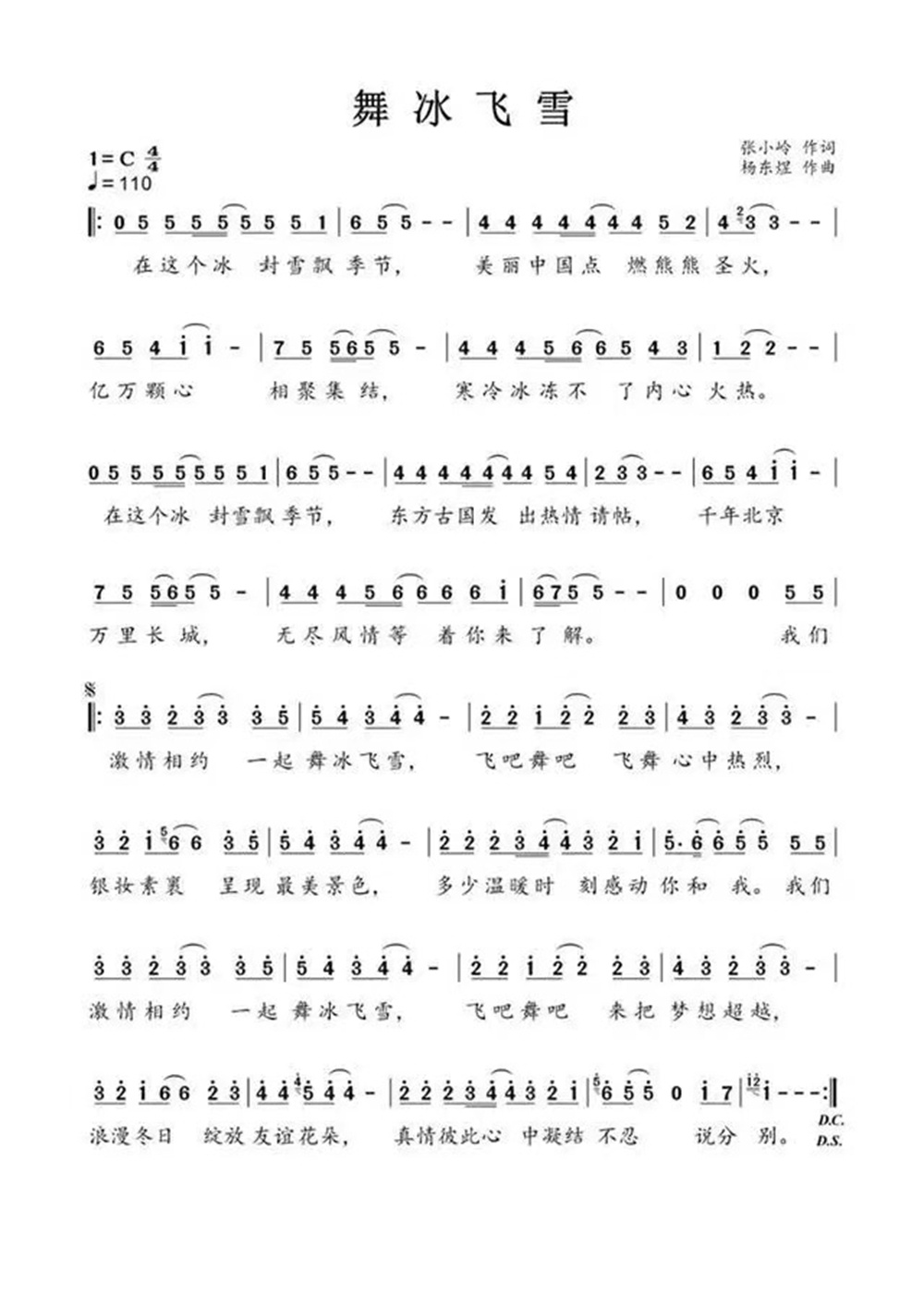 北京冬奧會申辦成功后,為冬奧會創作歌曲的想法就一直在張小嶺的腦海中浮現。他說:“那陣子,想的都是比賽的畫面。有一次,看到運動員在冰雪上飛舞,我眼前一亮,就決定用‘舞冰飛雪’這個題目,既體現了冰雪運動項目,還給人以動態的美感。”題目確定之后,張小嶺僅用半個月時間就完成了歌詞創作。