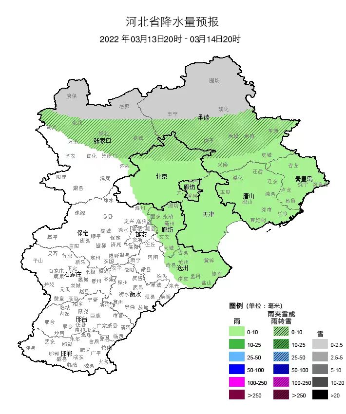 具體天氣預報為:3月13日夜間,陰轉多云,偏南風轉偏北風2~3級,最低氣溫4℃;14日,晴轉多云,氣溫20℃到8℃;15日,多云間晴,21℃到6℃;16日,多云轉陰有小雨,東北風4~5級陣風6~7級,16℃到3℃;3月17日,陰有零星小雨,東北風4~5級,6℃到0℃;18日,多云間陰,5℃到-2℃;19日,多云間晴,6℃到-3℃;20日,多云間陰,10℃到0℃。