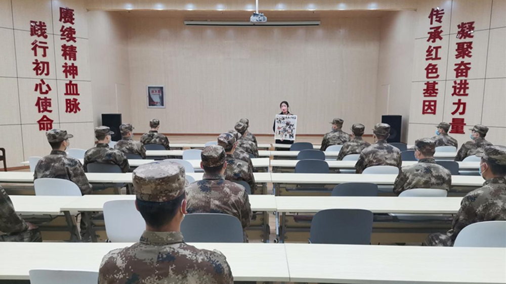 預定新兵在聆聽武強年畫中的黨史故事。武強縣人民武裝部供圖