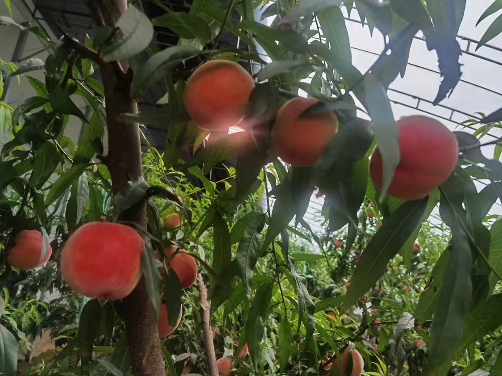 星火農(nóng)業(yè)基地有21座桃棚,占地100畝,鮮桃品種有“春麗”“金黃一號(hào)”等,鮮桃含糖量能達(dá)到14.2度。桃農(nóng)通過(guò)控制棚室溫度,讓桃樹(shù)完成休眠,在合適的時(shí)間再逐步提高棚室溫度,促進(jìn)桃樹(shù)開(kāi)花,鮮桃上市時(shí)間可提前兩個(gè)月。該基地的鮮桃憑借上市早、口感甜、易運(yùn)輸、耐儲(chǔ)存等優(yōu)勢(shì),每公斤能賣到40元左右,還供不應(yīng)求。