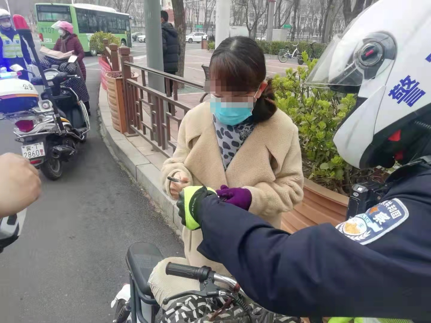當日上午,在中華大街與人民路交叉口東北角,一女士騎電動車沿人民路逆行而來,交警迅速將其攔下。“你逆行了,知道這樣做有什么危害嗎?”“知道知道,容易引發交通事故。我想著馬上到目的地了,就逆行十幾米。”“出行路上,一點兒僥幸心理也要不得……”交警對女子進行批評教育后,給其開具了罰單。“處罰不是目的,主要是為了讓交通參與者都能夠自覺遵守交通法規,不闖紅燈、不抄近路,營造良好的道路交通環境。”機動大隊交警吳治國介紹說。