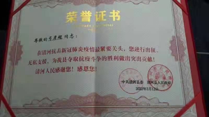 據了解,3月4日晚接到上級通知后,弓彥超連夜趕赴邢臺市清河縣支援疫情防控工作。13日,按照上級指示他從清河出發轉戰廊坊市繼續支援疫情防控工作。因無法于18日到場參加安平縣衛健局黨支部召開的接收預備黨員大會,弓彥超以錄制視頻的形式,在會上做了表態:“成為中國共產黨的一員,既是榮譽,更是責任,作為一名基層醫務工作者,今后我將更加嚴格要求自己,不斷提高思想覺悟,牢記黨員和醫務工作者的雙重使命,堅持群眾路線,全心全意為人民服務,為人民群眾的身體健康和生命安全保駕護航。”