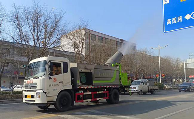 霧炮車正在進行灑水降塵作業。景縣融媒體中心供圖
