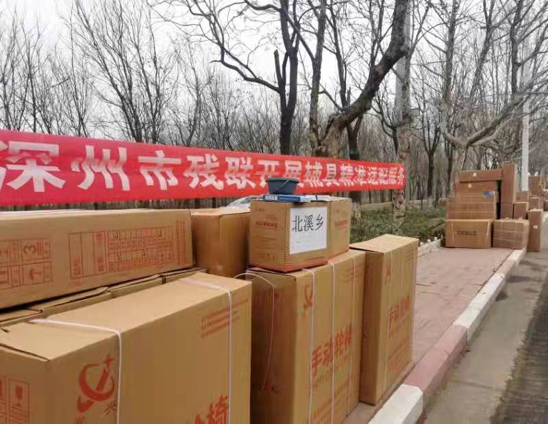 當天,輪椅、助行器、助聽器……一箱箱嶄新的殘疾人輔助器具,整齊地擺放在深州市泰山東路街邊,各鄉鎮殘聯工作人員正忙著幫殘疾人代領。