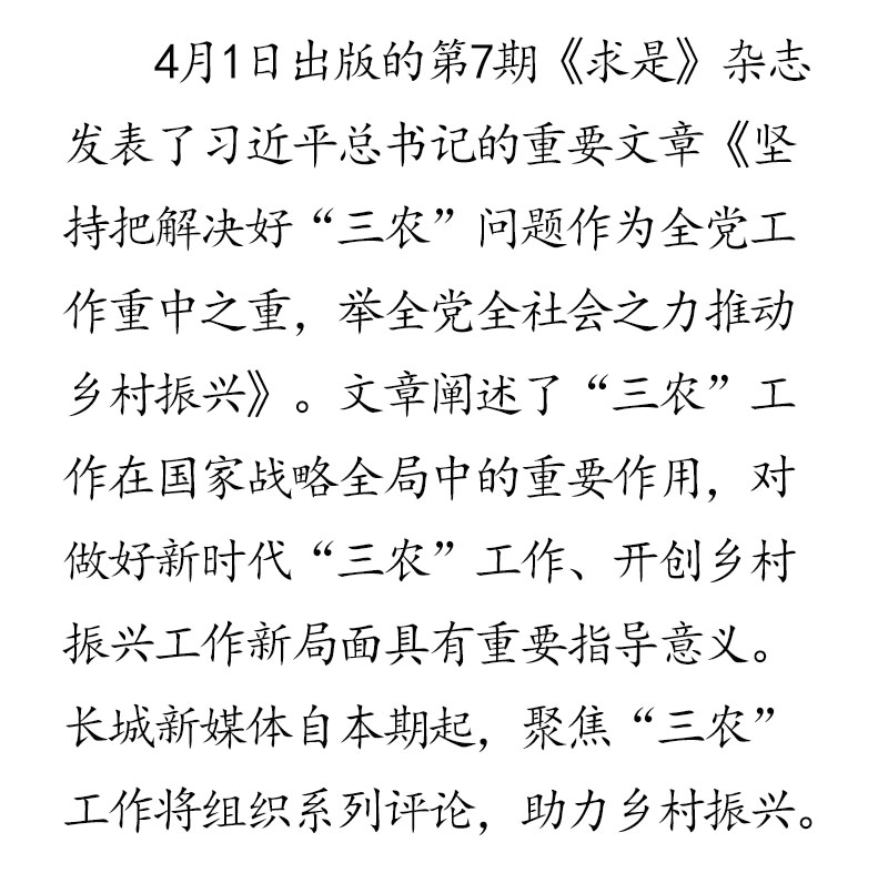長城評論 | 在希望的田野上①抓實 “三農”工作,推動鄉村振興