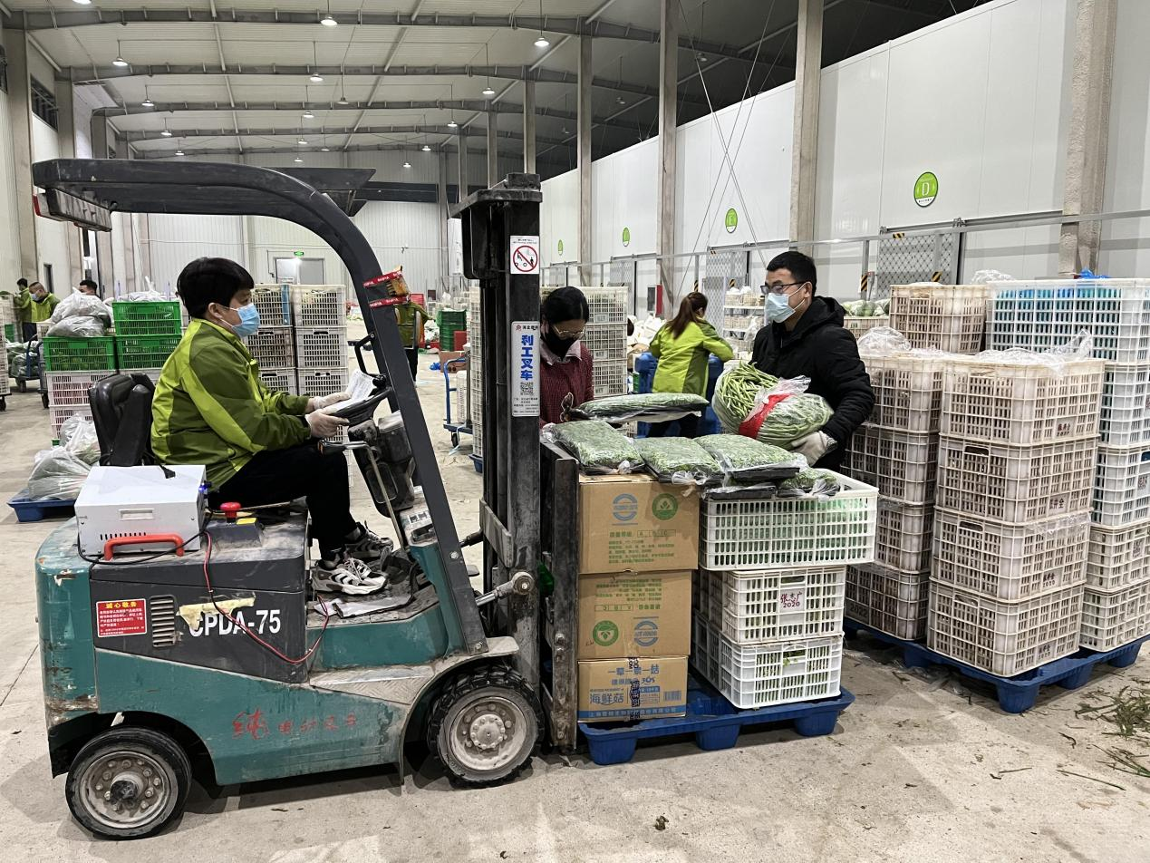 4月1日凌晨3時30分許,河北鮮天下網絡科技有限責任公司的車間內呈現一派繁忙的景象,工作人員通過分揀、檢驗、裝車等工序,將貨物配送到深州市的365家農村(社區)超市,保障老百姓吃上新鮮、放心的農產品。