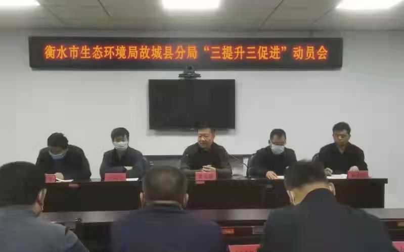 為落實省、市、縣黨委政府“三統籌三擴大四創建”決策部署,按照省廳、市局開展“三提升三促進”活動安排,近日,故城縣生態環境分局召開了“三提升三促進”動員會。分局黨組書記、局長賈長緒主持會議并講話,全體領導班子成員及中層以上干部參加會議。