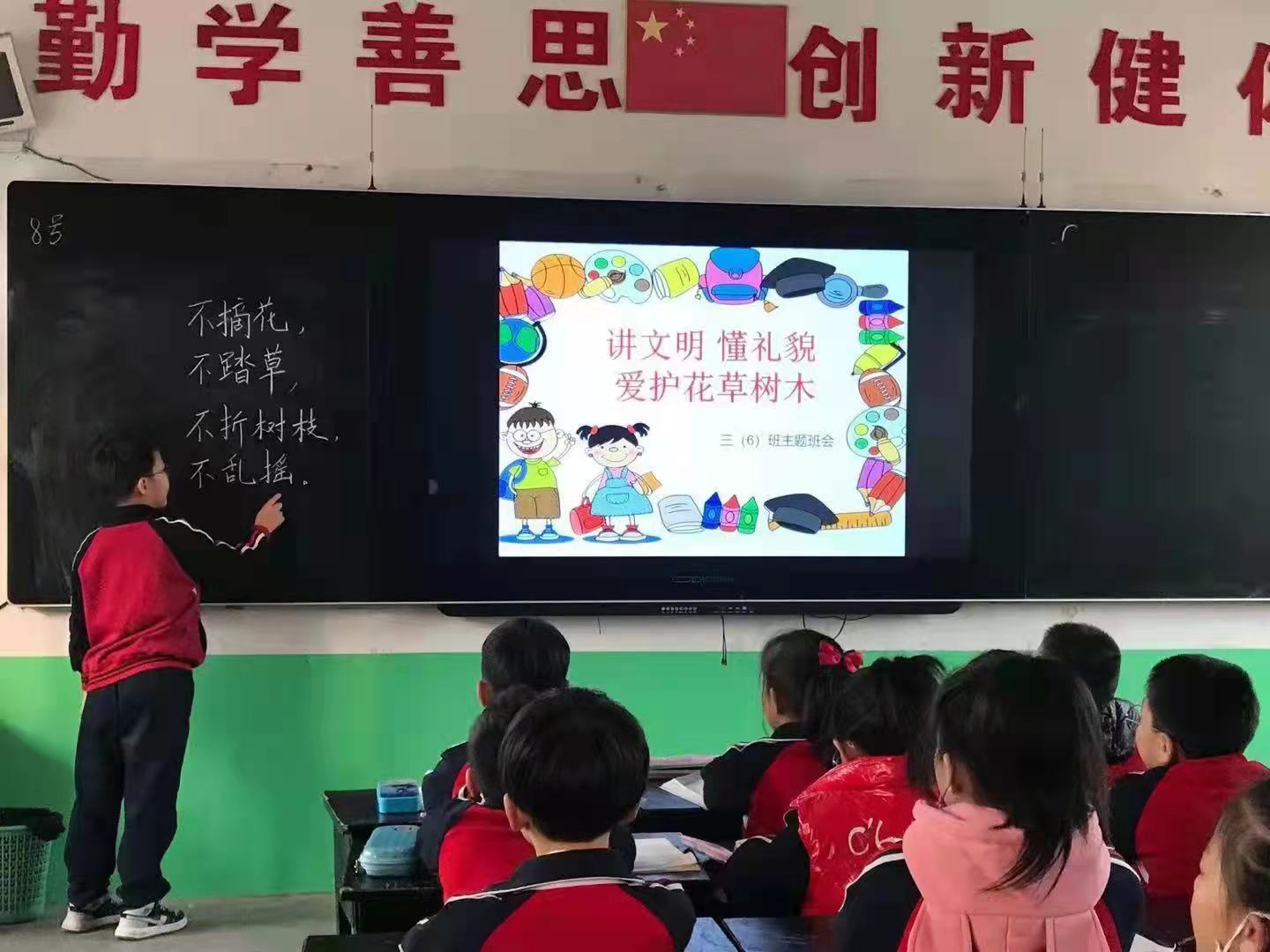 強化思想道德教育,塑造文明創建之體。該校積極開展學生思想教育,不斷探索德育工作的新途徑,提高德育工作的實效性。他們積極組織學生參加各種形式的活動,著力對學生的思想道德進行教育,讓學校成為文明之花的“培養室”。利用國旗下講話、“扣好人生第一顆紐扣”系列活動、重大傳統節日手抄報、“學雷鋒”系列活動、“新時代好少年”評選活動、“快樂假期,多彩實踐”假期活動、“時刻聽黨話,永遠跟黨走”讀書教育活動等對學生進行思想品德教育,構建了“學校、社會、家庭”三結合的德育網絡。此外,班級設置了好人好事記錄本,學生將每天所做的善事記錄下來,鼓勵全校師生多做好事,記錄本也成了激勵學生成長的一面旗幟。
