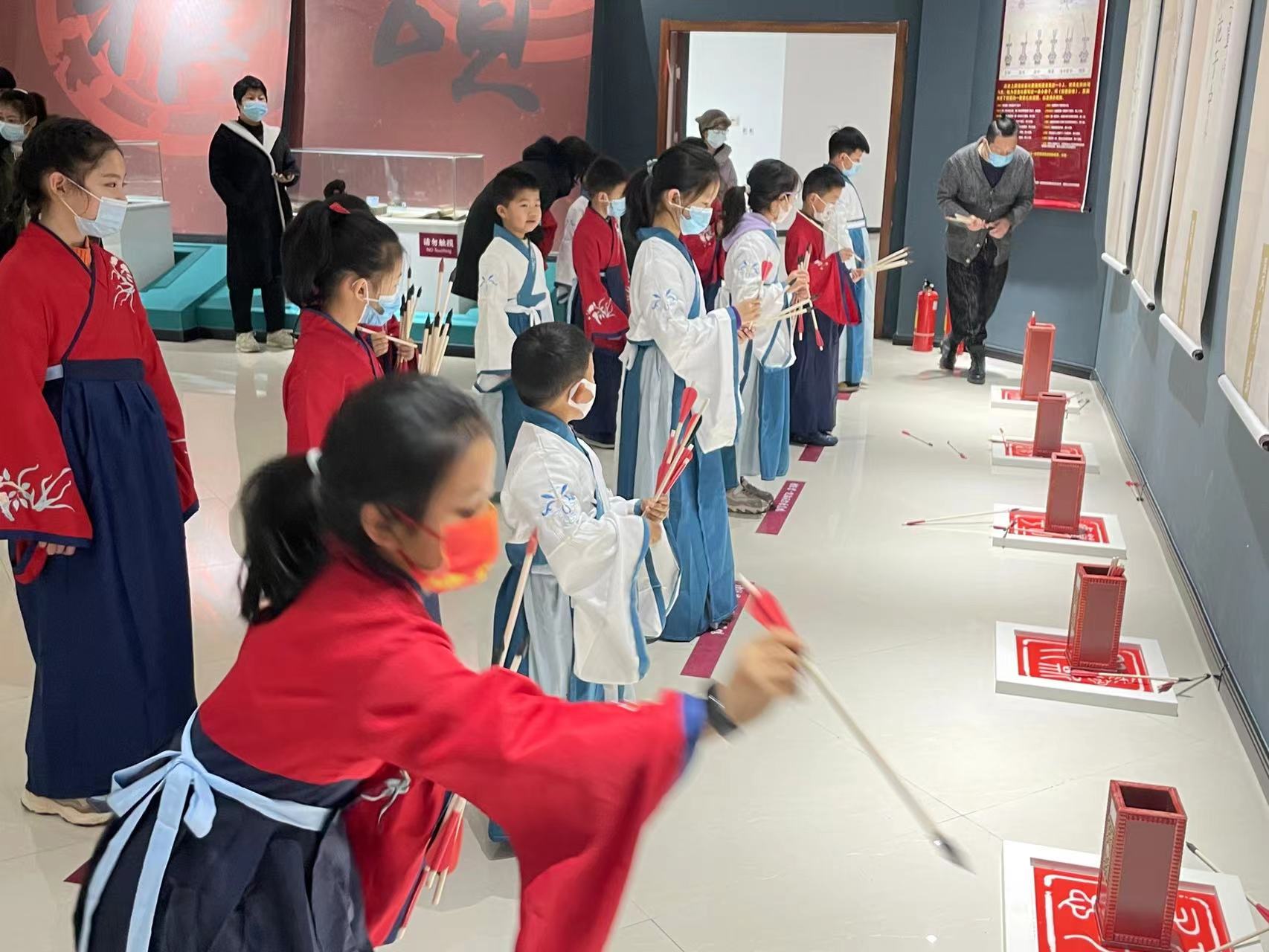 群升文化展覽館和詩經里·饒陽風物展覽館不但吸引全國各地的參觀游覽者,還得到了各級領導和文化界知名人士的關注,著名畫家段秀蒼將四十多幅畫作無償捐助,著名內畫大師張汝財、王立夫等多次來這里進行文化研討,刻銅大師宋國柱更是多次現場獻藝。更為可喜的是展覽館成為各地游學者的打卡地,一批又一批的游學者紛至沓來,他們玩投壺游戲,感受古代樂趣;拓片制作,體驗傳統拓印技藝;讀誦詩經,感受詩經之美……游學者流連忘返,在追尋前人的足跡上,生發出對中華優秀傳統文化的推崇與熱愛。