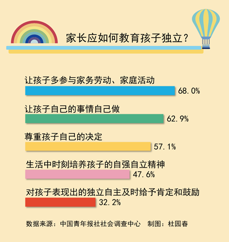 來源:中國青年報原標題:教孩子獨立 68.0%受訪者認為要讓孩子多參與家務 59.1%受訪者不贊成家長對孩子“大包大攬”