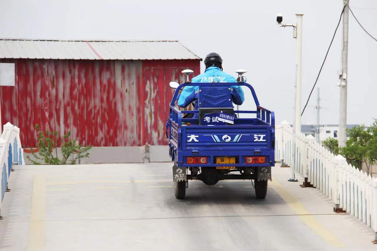 當天上午7時30分,首批參加考試的外賣快遞小哥統一乘車到武強縣公安交警大隊報名考試。到達駕考現場后,考試前民警給他們詳細講解了考試流程和三輪摩托車操作規范,并讓他們進行了現場適應性練習。隨后,監考人員嚴格按照公安部駕考相關規定,認真核對參考人員身份信息,按順序參加科目考試。考完科目一的陸鈺明喜滋滋地說:“之前咨詢過考駕照的事兒,排隊的人太多了,平時又忙著工作,如今能趕上集中考駕駛證,真的太開心了!”